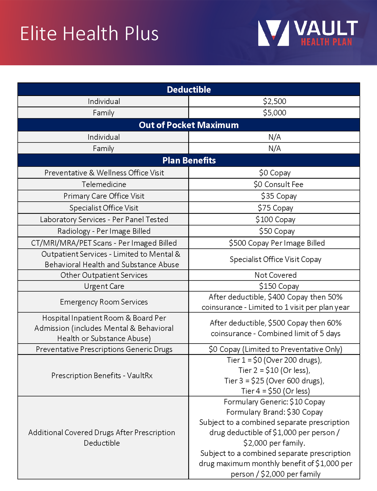 NOTE: Please refer to the Schedule of Benefits for a more in-depth list of Benefits Coverage, Limitations & Exclusions. If this document differs from the Schedule of Benefits, the Schedule of Benefits will govern.
